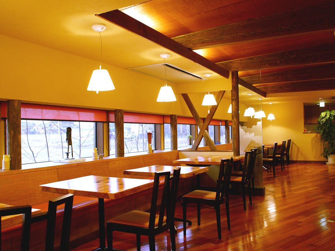 店内には中庭があり、全席が窓際になるようにレイアウトされ景色がお楽しみ頂けます。ベンチシートタイプの席が多く、お子様連れには最適です。